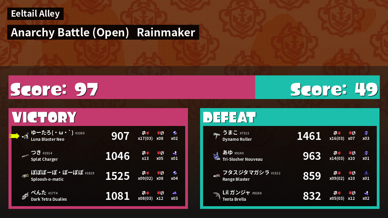 Kills / Deaths | 14 + 3 / 8 > Kill Ratio: 1.75 | ||