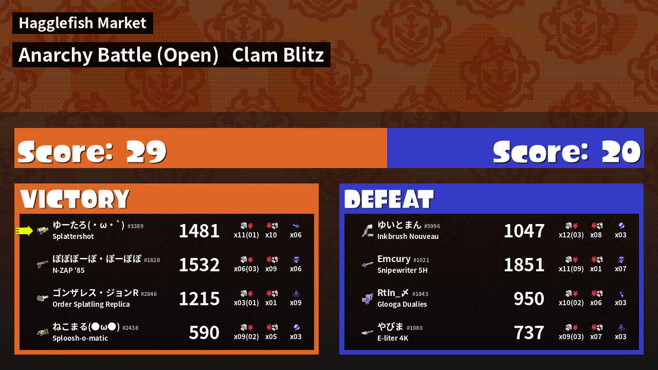 | Mode | Clam Blitz - Anarchy Battle (Open) | ||