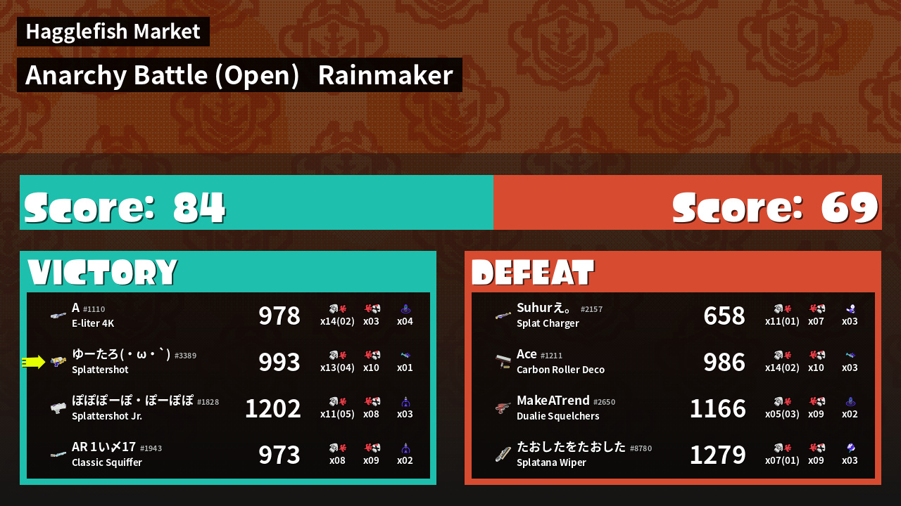 | Mode | Rainmaker - Anarchy Battle (Open) | ||