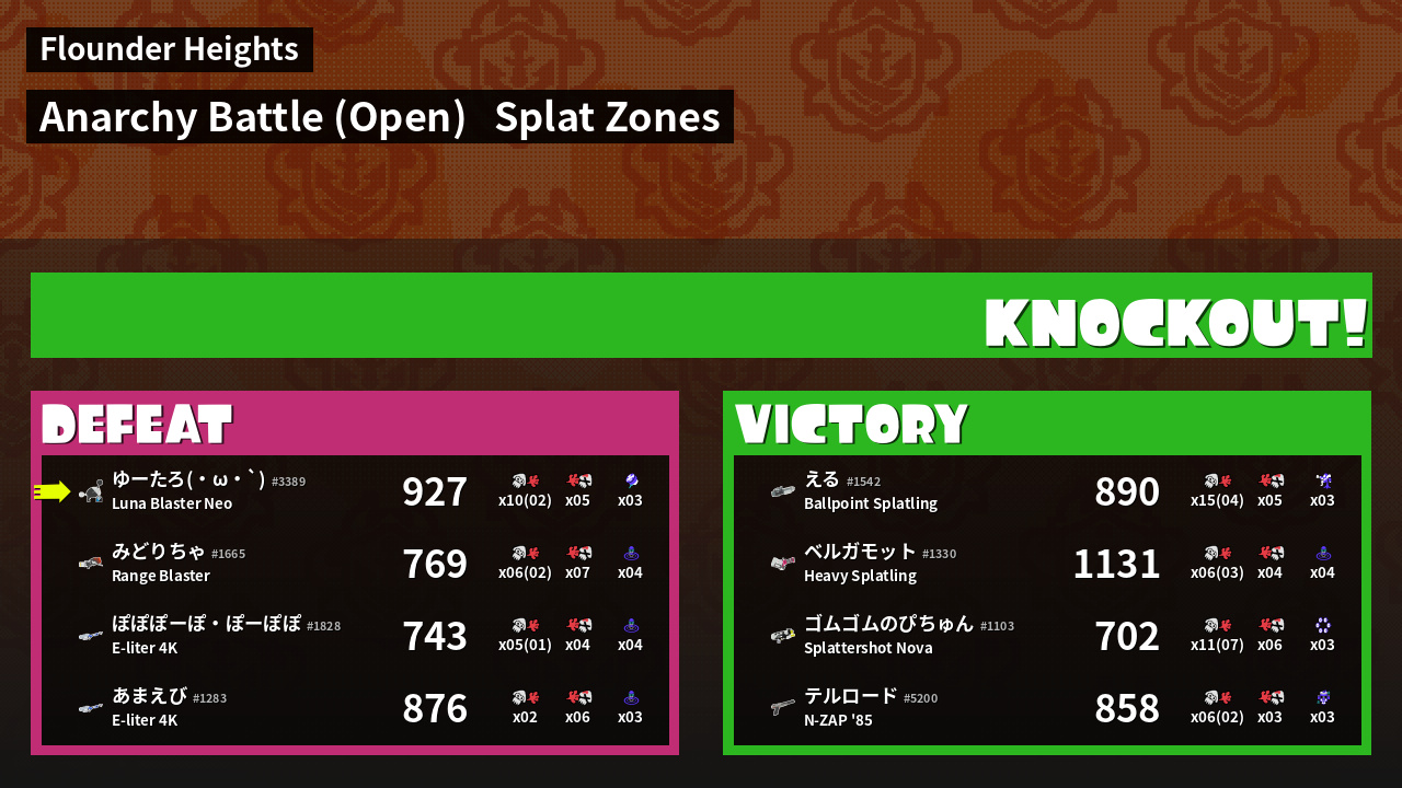 | Mode | Splat Zones - Anarchy Battle (Open) | ||