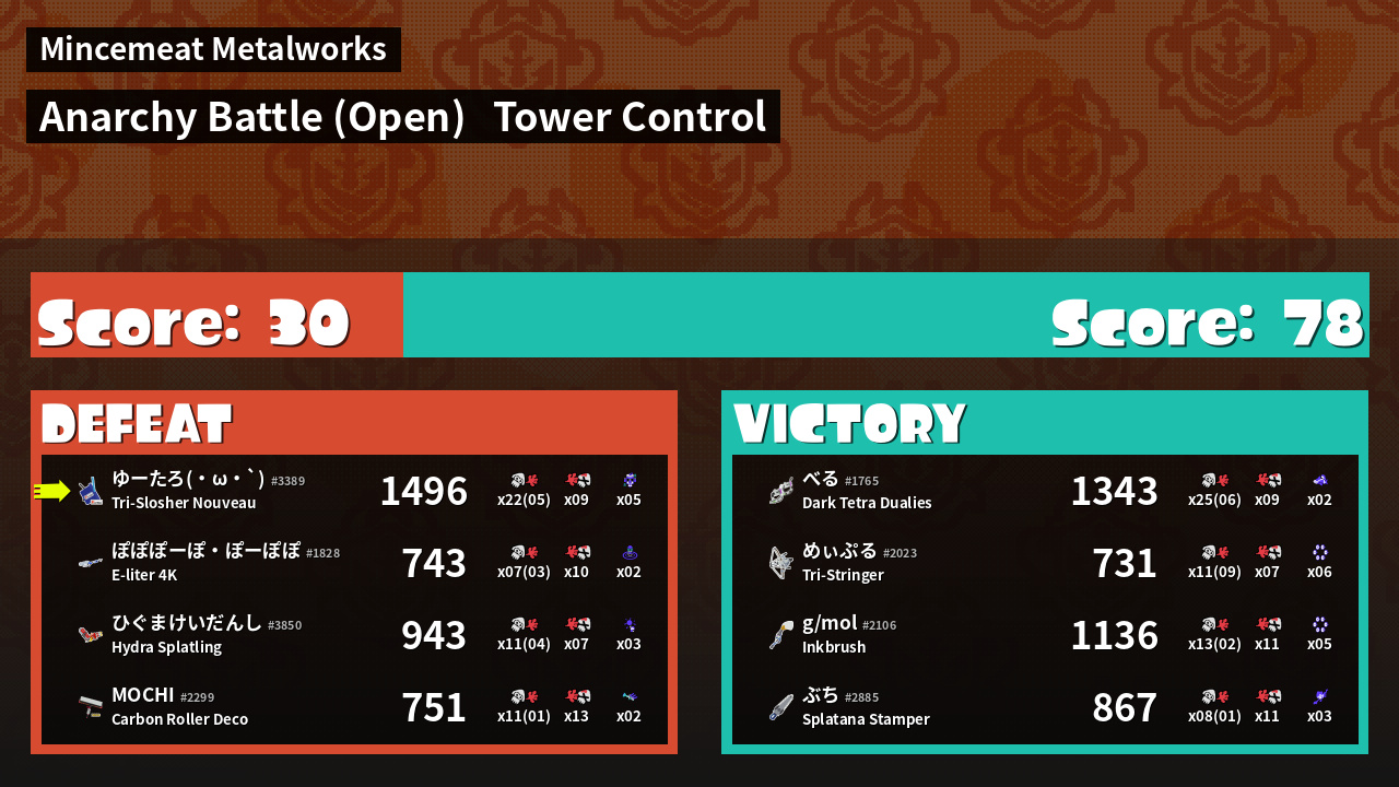 | Mode | Tower Control - Anarchy Battle (Open) | ||