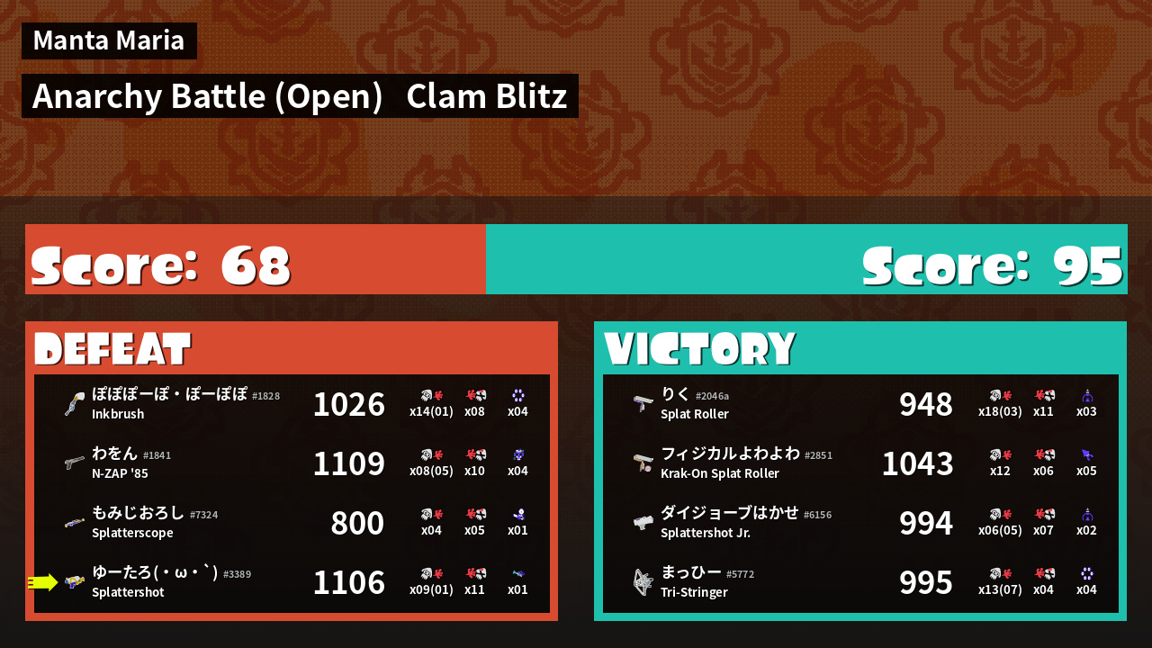 | Mode | Clam Blitz - Anarchy Battle (Open) | ||