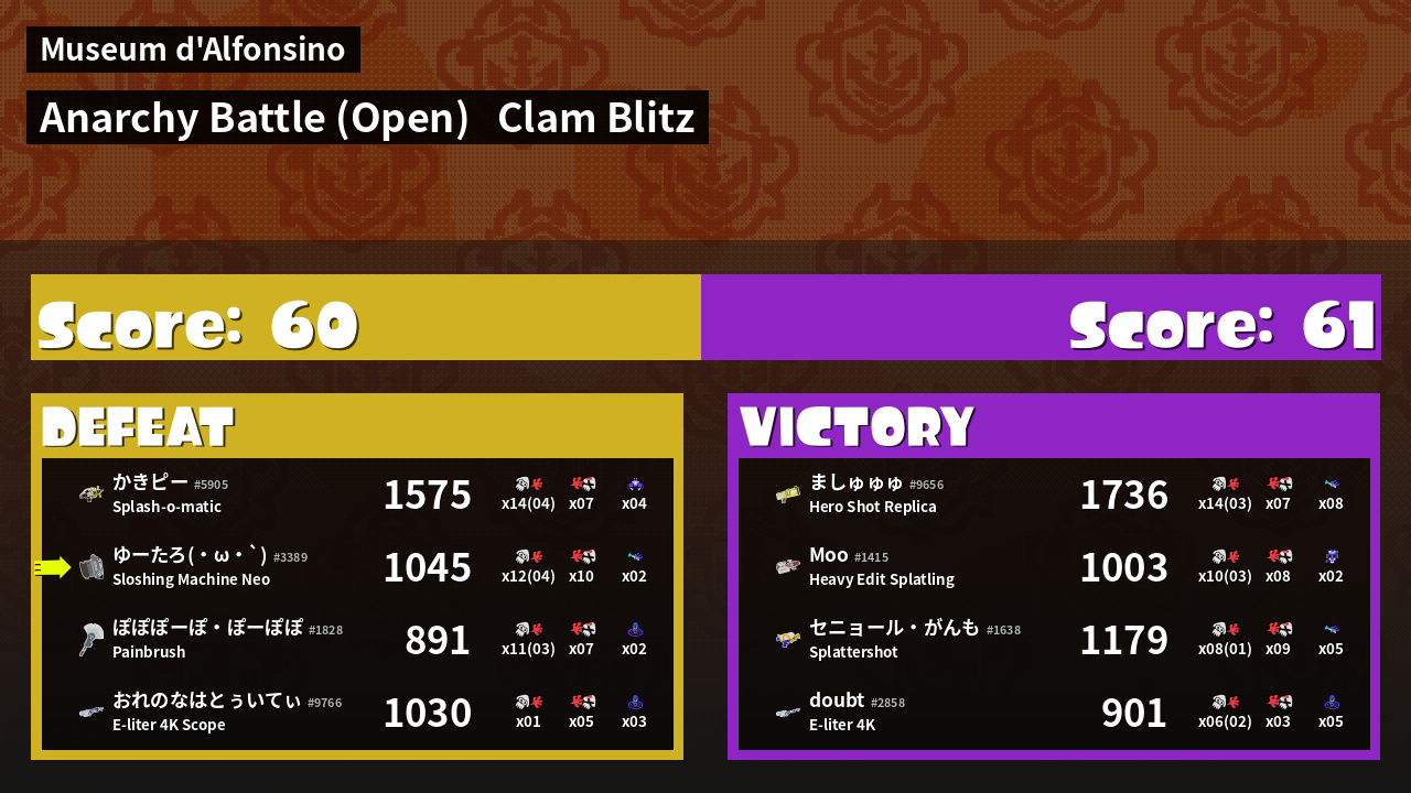 | Mode | Clam Blitz - Anarchy Battle (Open) | ||