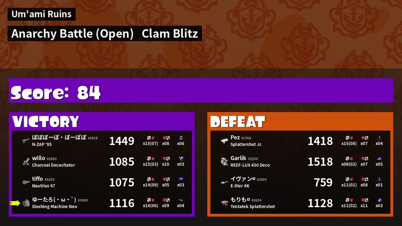 Kills / Deaths | 8 + 6 / 9 < Kill Ratio: 0.89 | ||