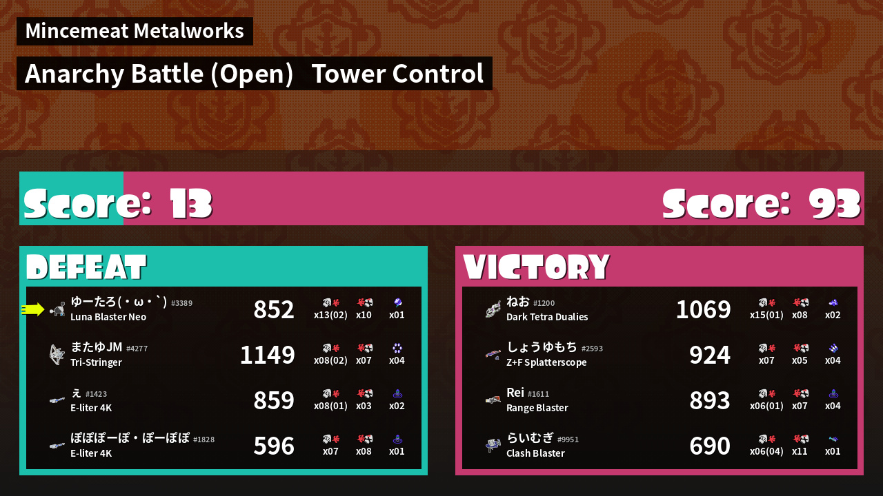 | Mode | Tower Control - Anarchy Battle (Open) | ||