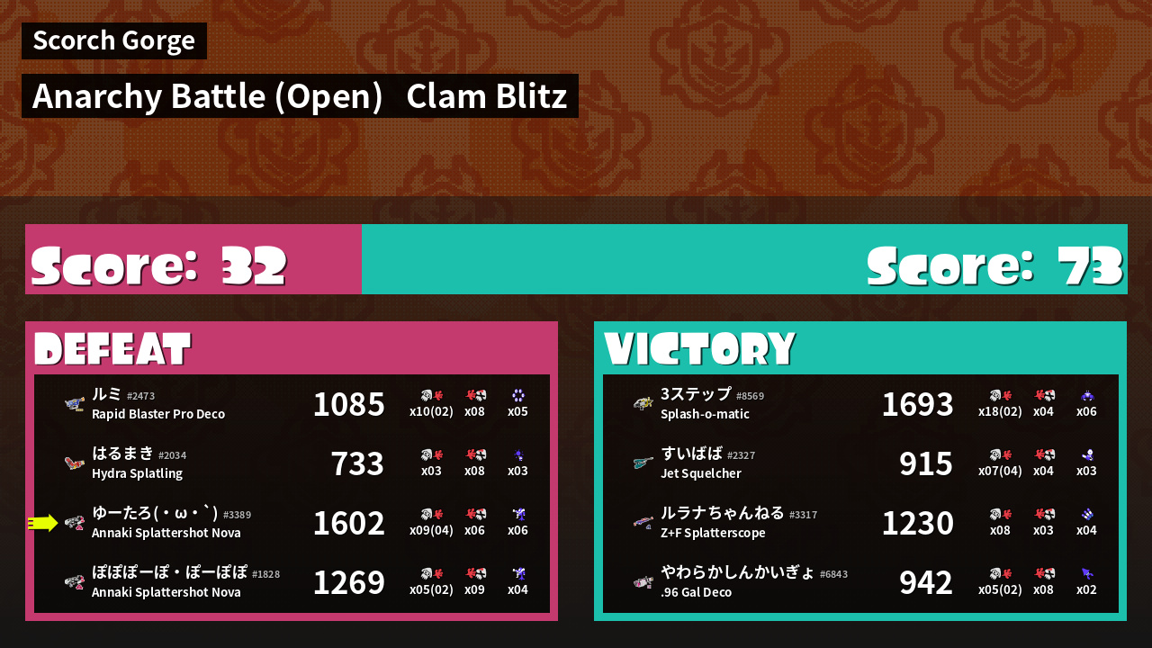 | Mode | Clam Blitz - Anarchy Battle (Open) | ||