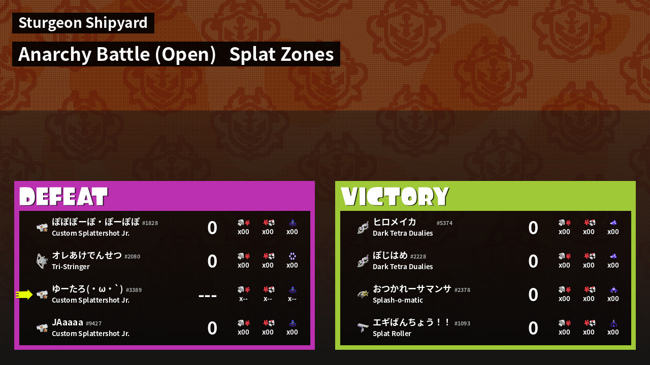 User Agent | s3s / v0.3.0 | ||