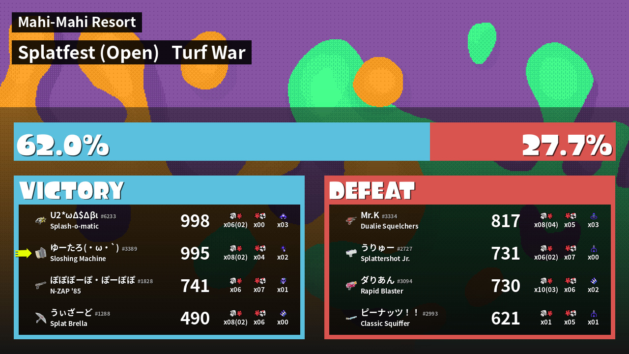 Kills / Deaths | 6 + 2 / 4 > Kill Ratio: 1.50 | ||