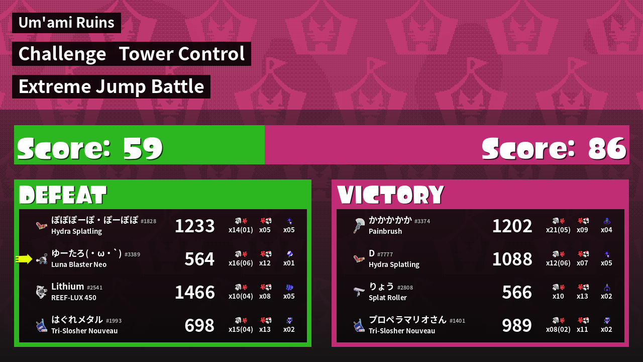 | Medals | #1 Overall Splatter #1 Splat Assister #1 Ground Traveler | ||