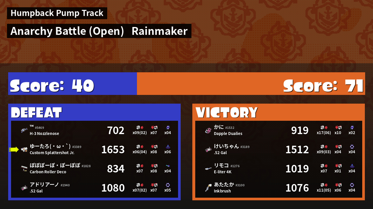 | Mode | Rainmaker - Anarchy Battle (Open) | ||