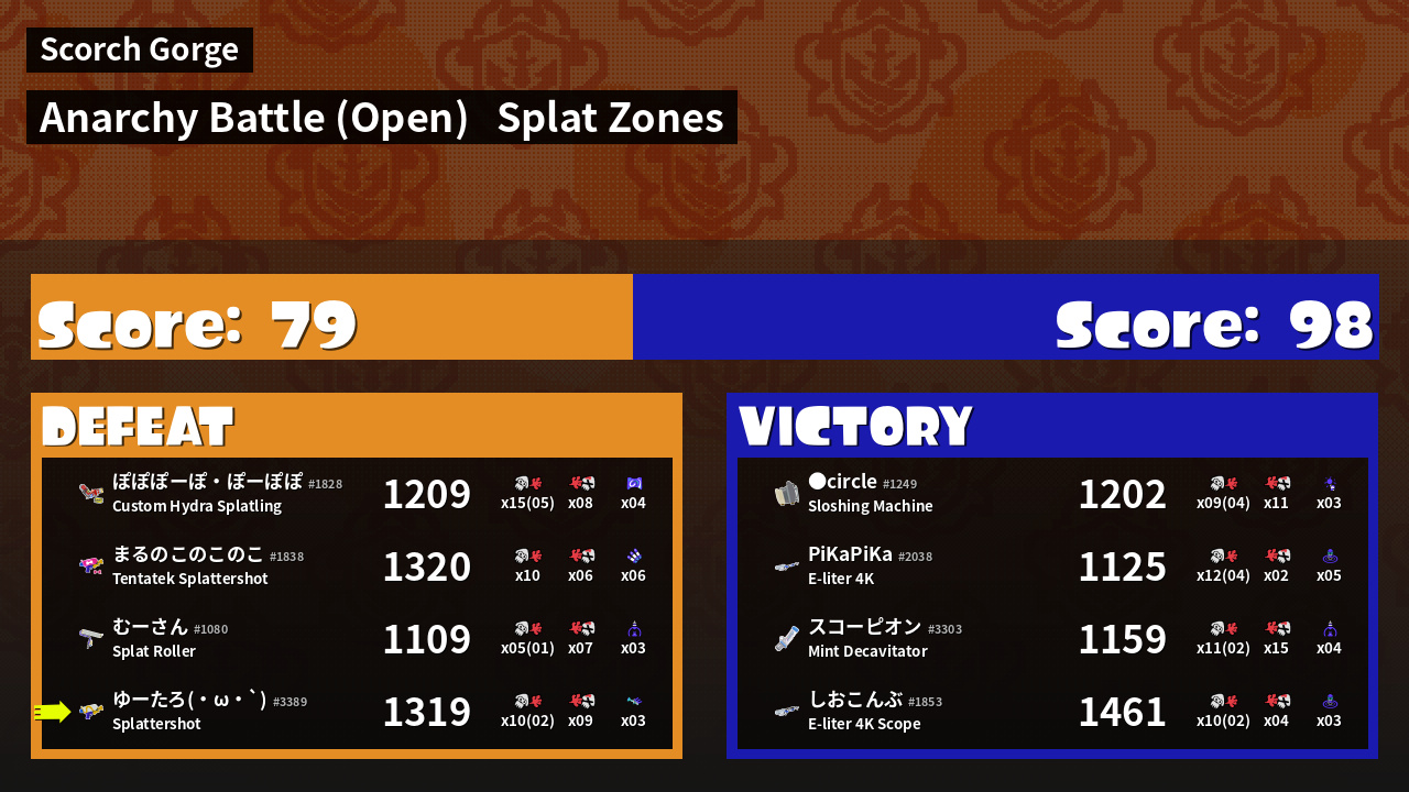 | Mode | Splat Zones - Anarchy Battle (Open) | ||