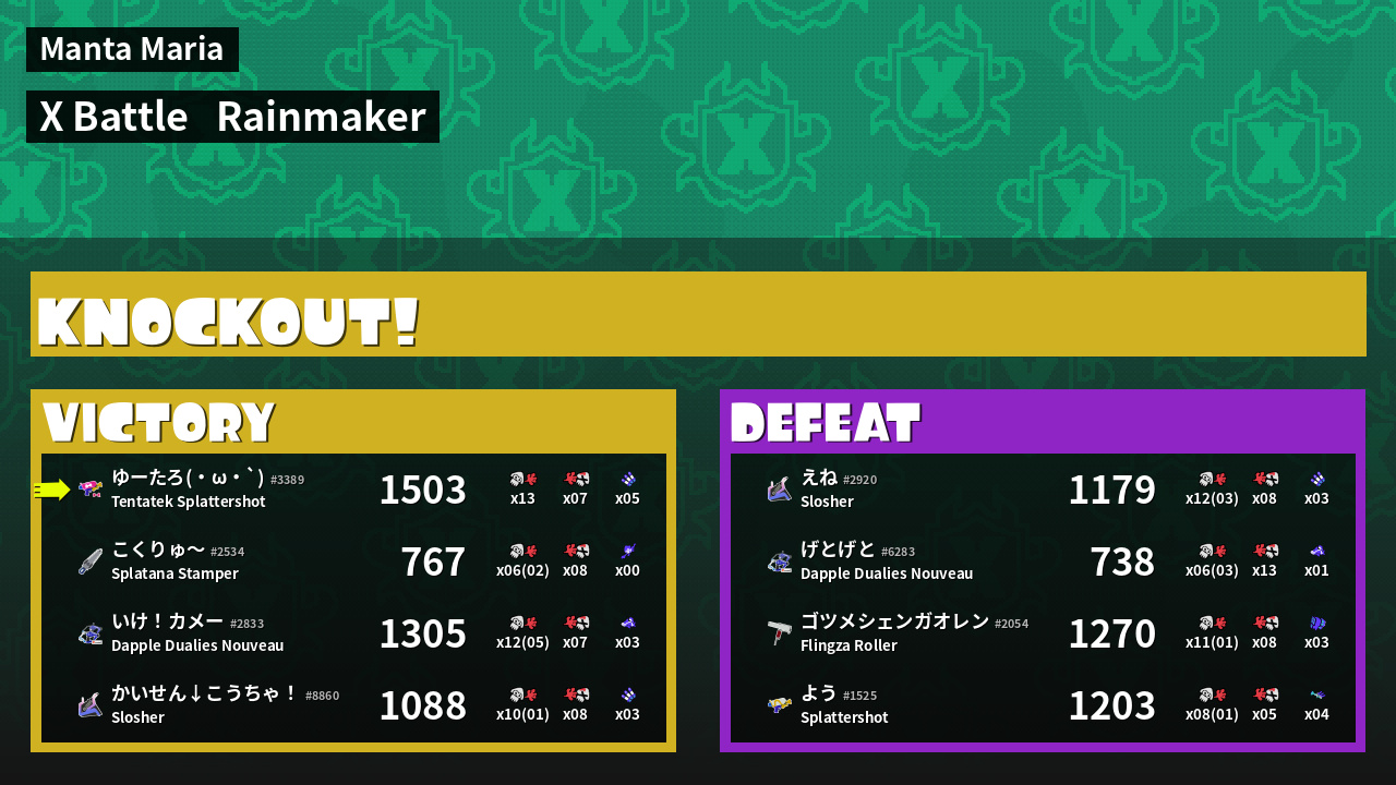 Kills / Deaths | 13 + 0 / 7 > Kill Ratio: 1.86 | ||