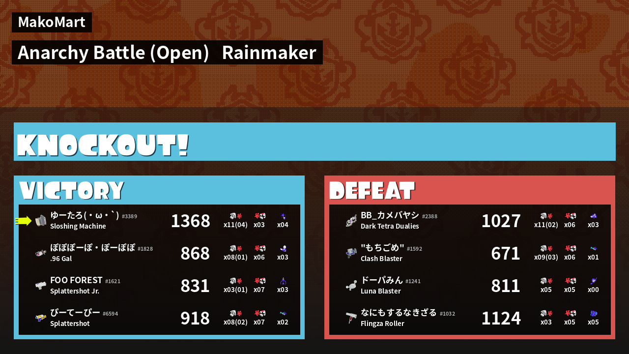 | Mode | Rainmaker - Anarchy Battle (Open) | ||