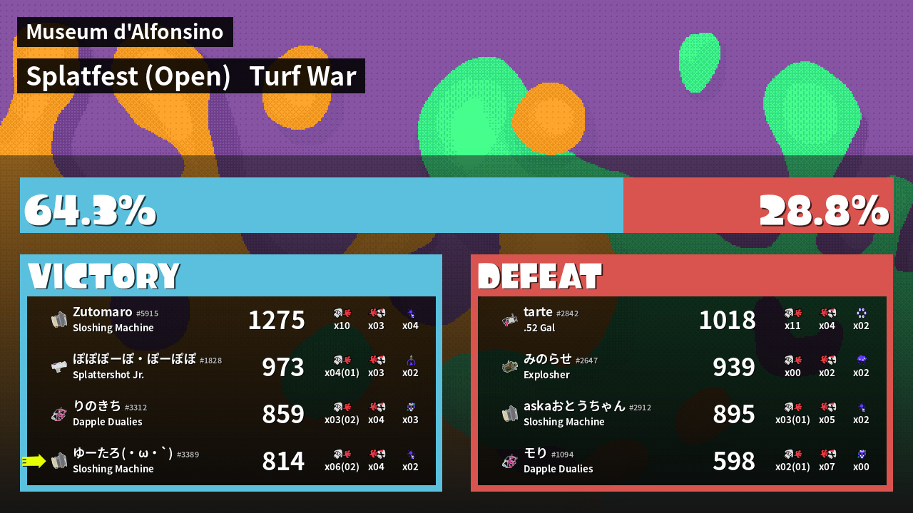 | Medals | #1 Splat Assister #2 Overall Splatter #2 Popular Target | ||