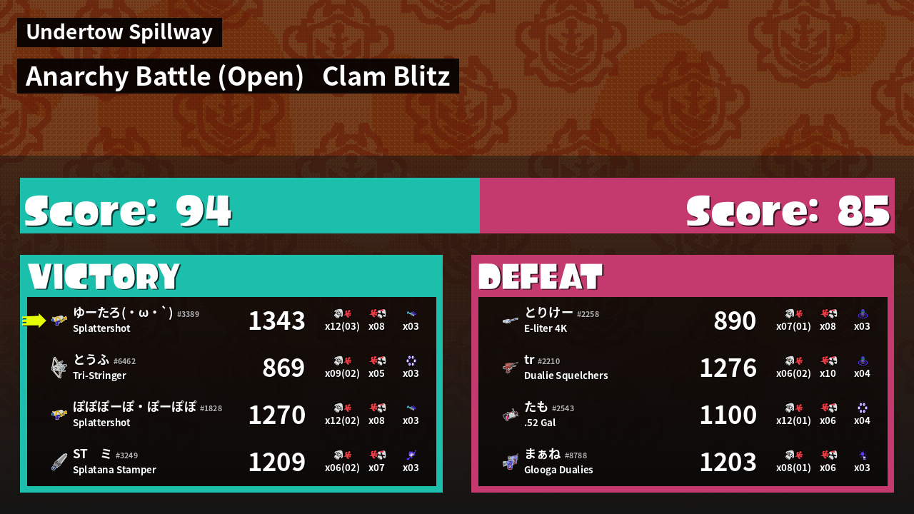 | Mode | Clam Blitz - Anarchy Battle (Open) | ||