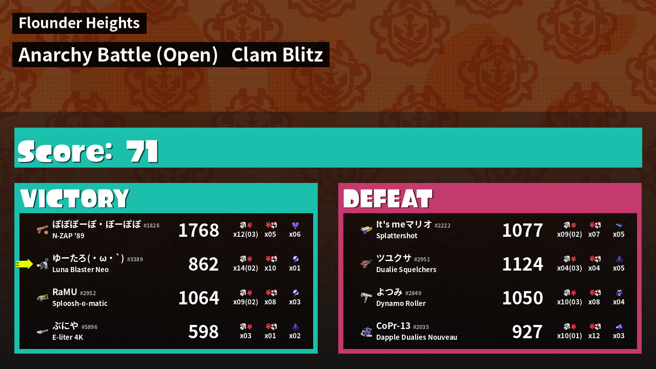 Kills / Deaths | 12 + 2 / 10 > Kill Ratio: 1.20 | ||