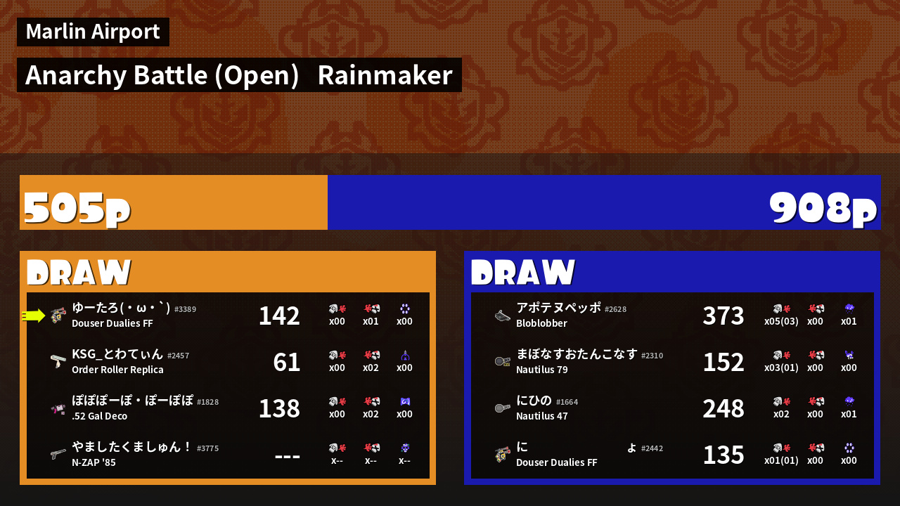 | Mode | Rainmaker - Anarchy Battle (Open) | ||
