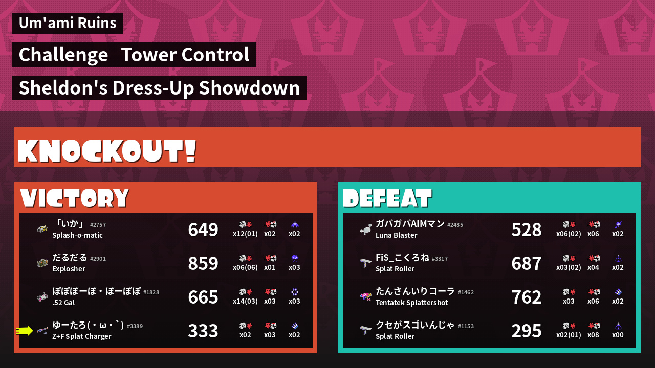 | Weapon | Z+F Splat Charger ( Splash Wall / Triple Inkstrike) | ||