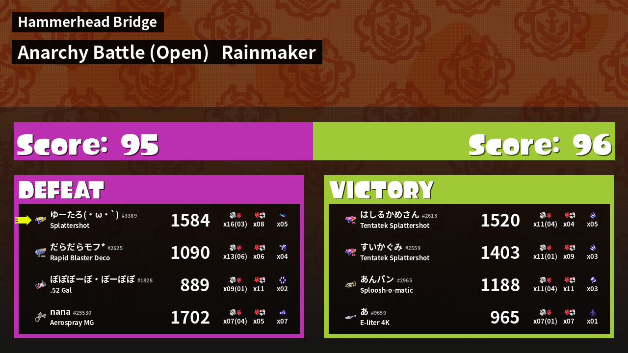 | Mode | Rainmaker - Anarchy Battle (Open) | ||