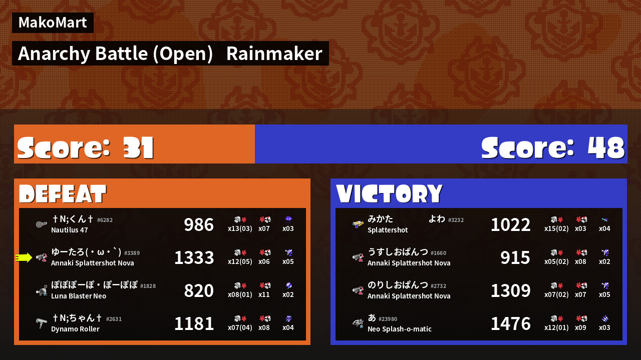 | Mode | Rainmaker - Anarchy Battle (Open) | ||