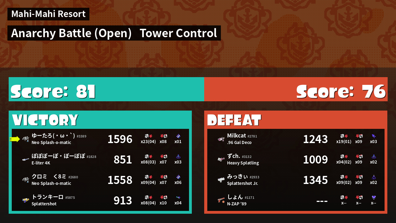 Kills / Deaths | 19 + 4 / 8 > Kill Ratio: 2.38 | ||