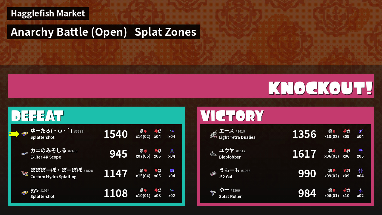 | Mode | Splat Zones - Anarchy Battle (Open) | ||