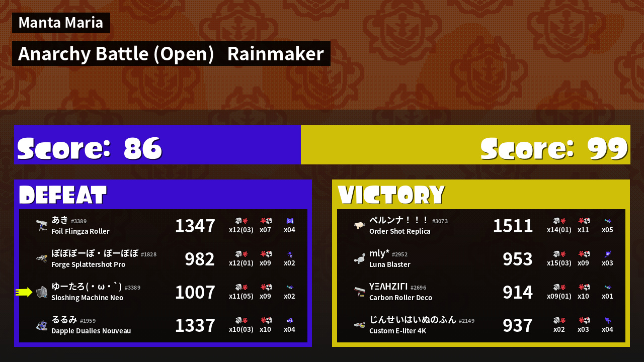 | Mode | Rainmaker - Anarchy Battle (Open) | ||