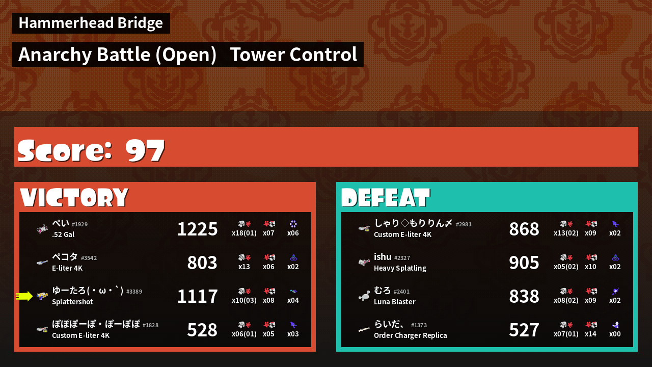 | Mode | Tower Control - Anarchy Battle (Open) | ||