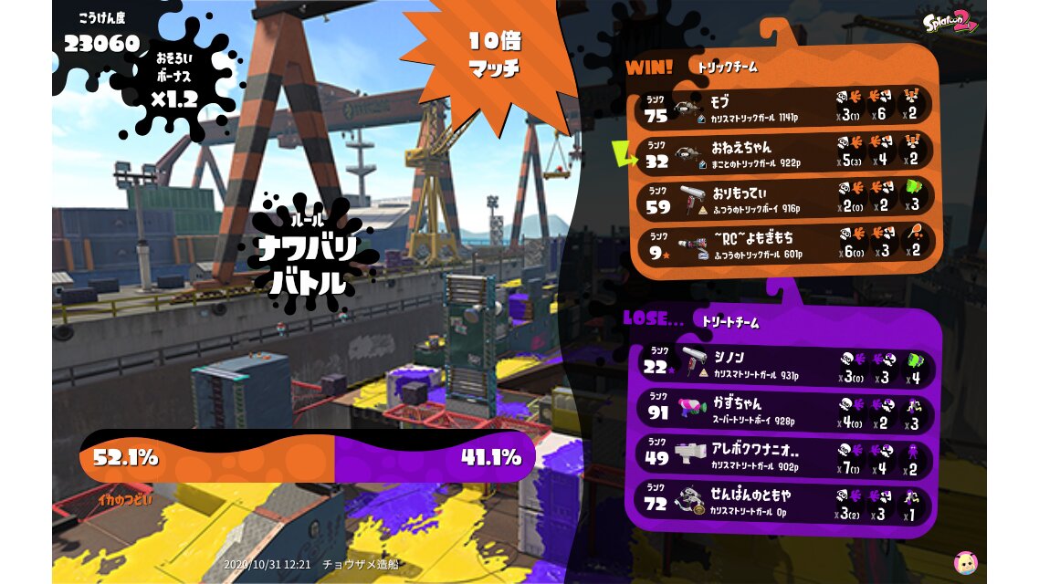 | Splatfest Title | トリック Fiend 161 → トリック Defender 19 | |||||||||||||||||||||||||||||||||||||