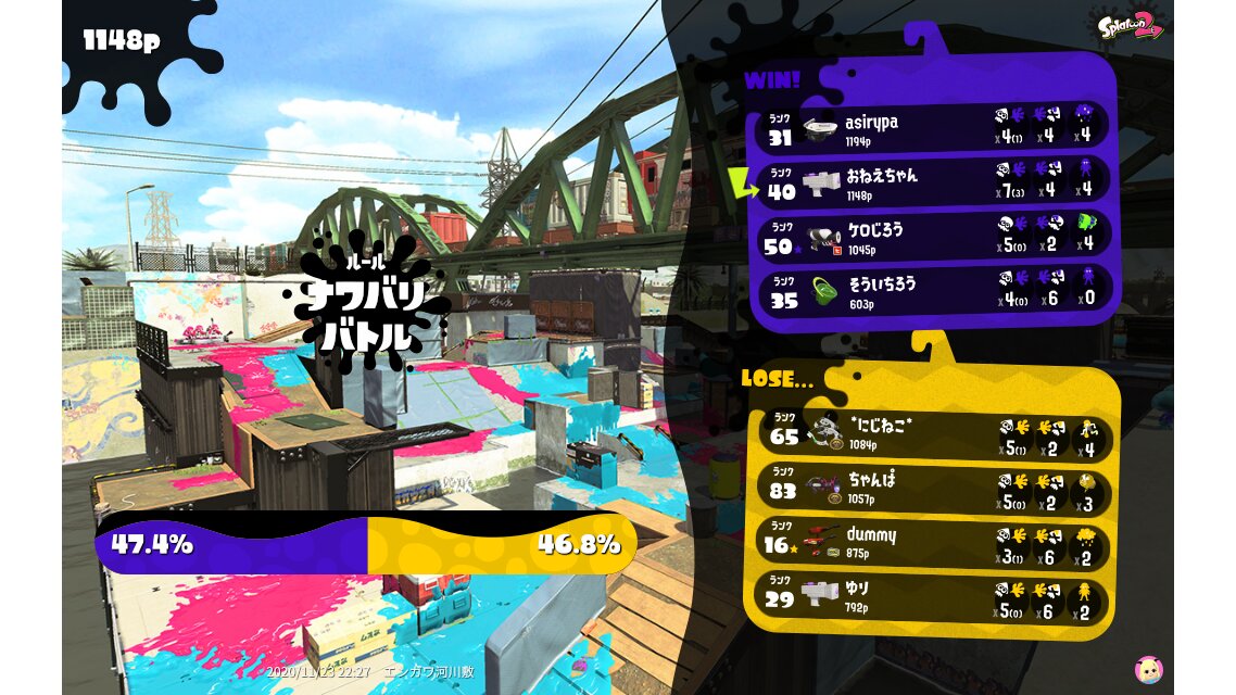 | SplatNet Battle # | 1,160 | ||||||||||||||||||||||||||||