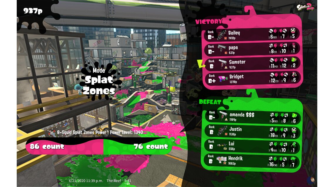 | Mode | Splat Zones - Ranked Battle | ||||||||||||||||||||||||||||||||||||||||||||||