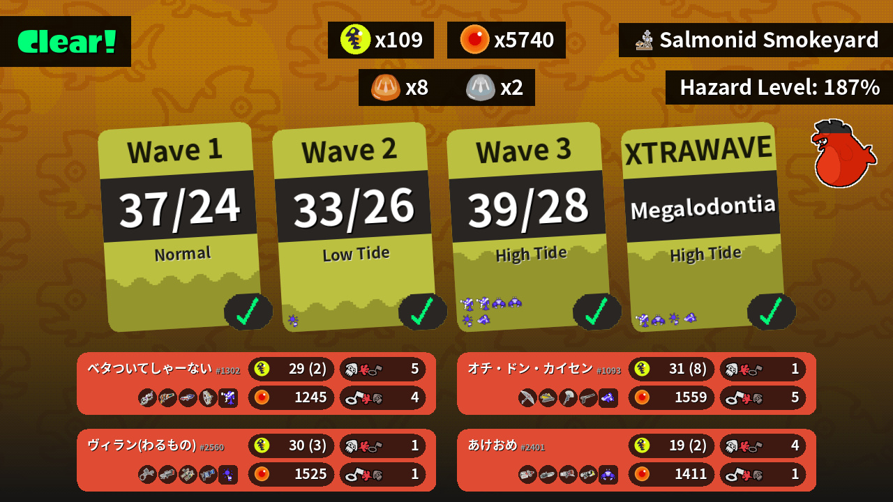 | Weapons | Dark Tetra Dualies Squeezer Splattershot Pro Grizzco Stringer | Splat Brella Dread Wringer Painbrush N-ZAP '85 | Aerospray MG S-BLAST '92 Grizzco Dualies L-3 Nozzlenose | Heavy Edit Splatling Ballpoint Splatling Blaster Splattershot Nova |