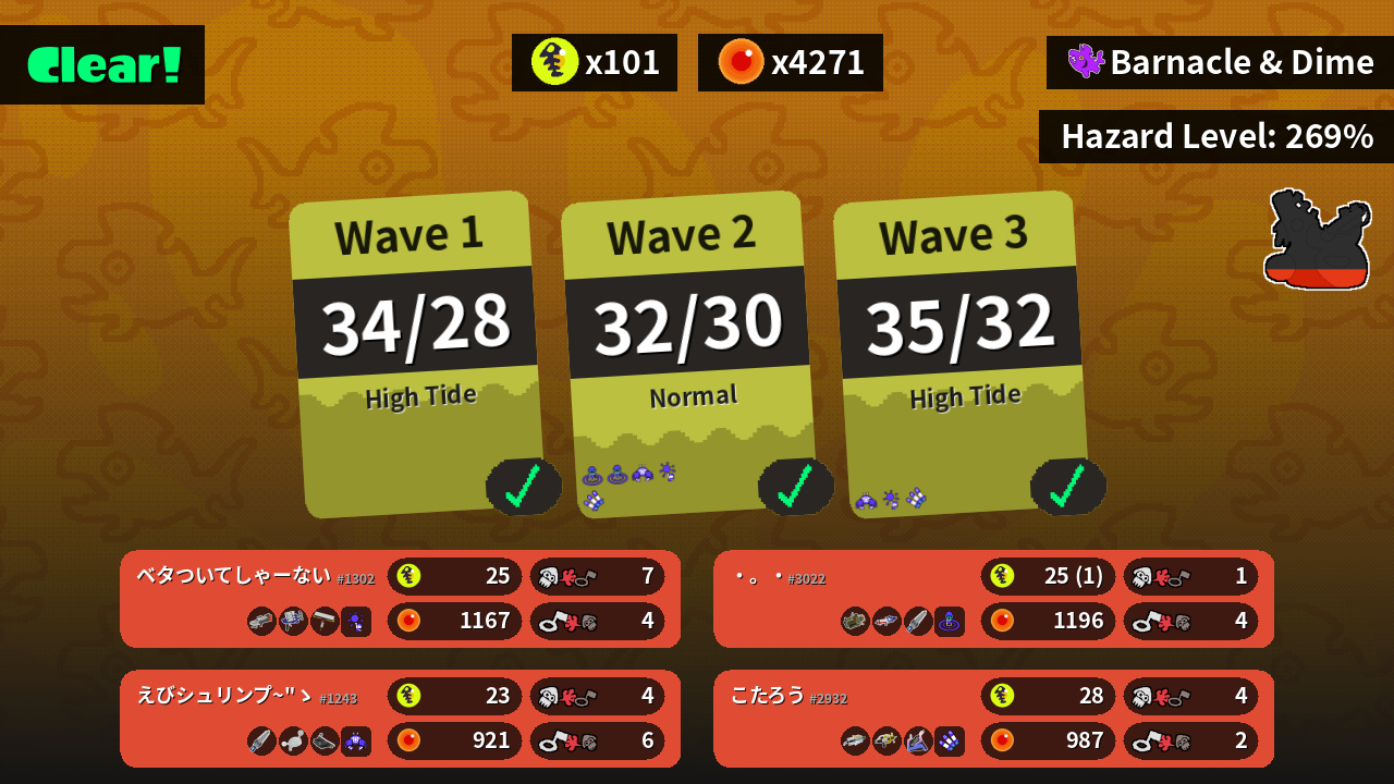 | Special | Booyah Bomb (2) | Triple Inkstrike (2) | Wave Breaker (2) | Crab Tank (2) |