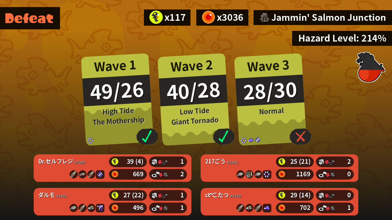 | Weapons | Grizzco Splatana Grizzco Charger Grizzco Splatana | Grizzco Splatana Grizzco Blaster Grizzco Splatana | Grizzco Brella Grizzco Splatana Grizzco Blaster | Grizzco Brella Grizzco Slosher Grizzco Brella |