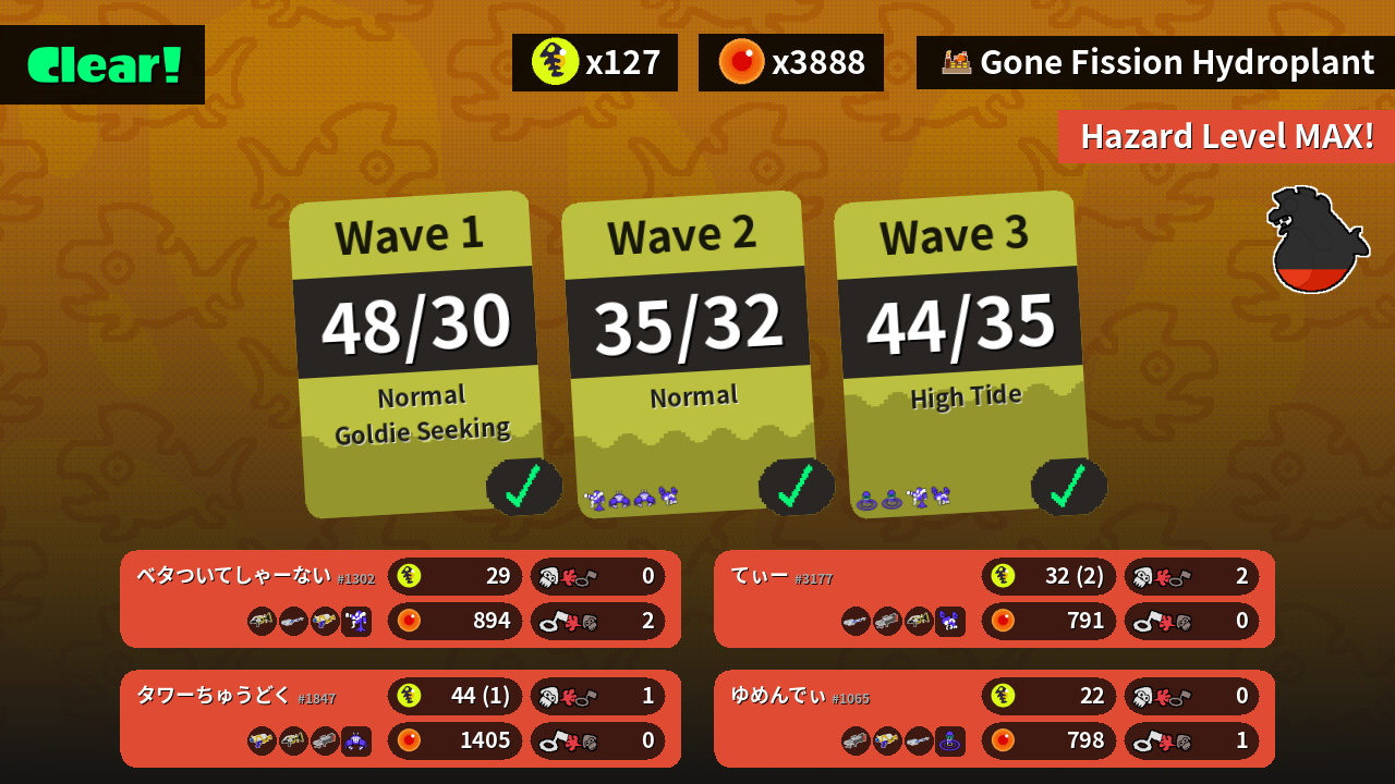 | Weapons | Sploosh-o-matic E-liter 4K Splattershot | Splattershot Sploosh-o-matic S-BLAST '92 | E-liter 4K S-BLAST '92 Sploosh-o-matic | S-BLAST '92 Splattershot E-liter 4K |