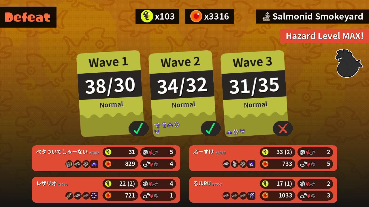 | Boss Salmonid | 14 | 19 | 16 | 32 |