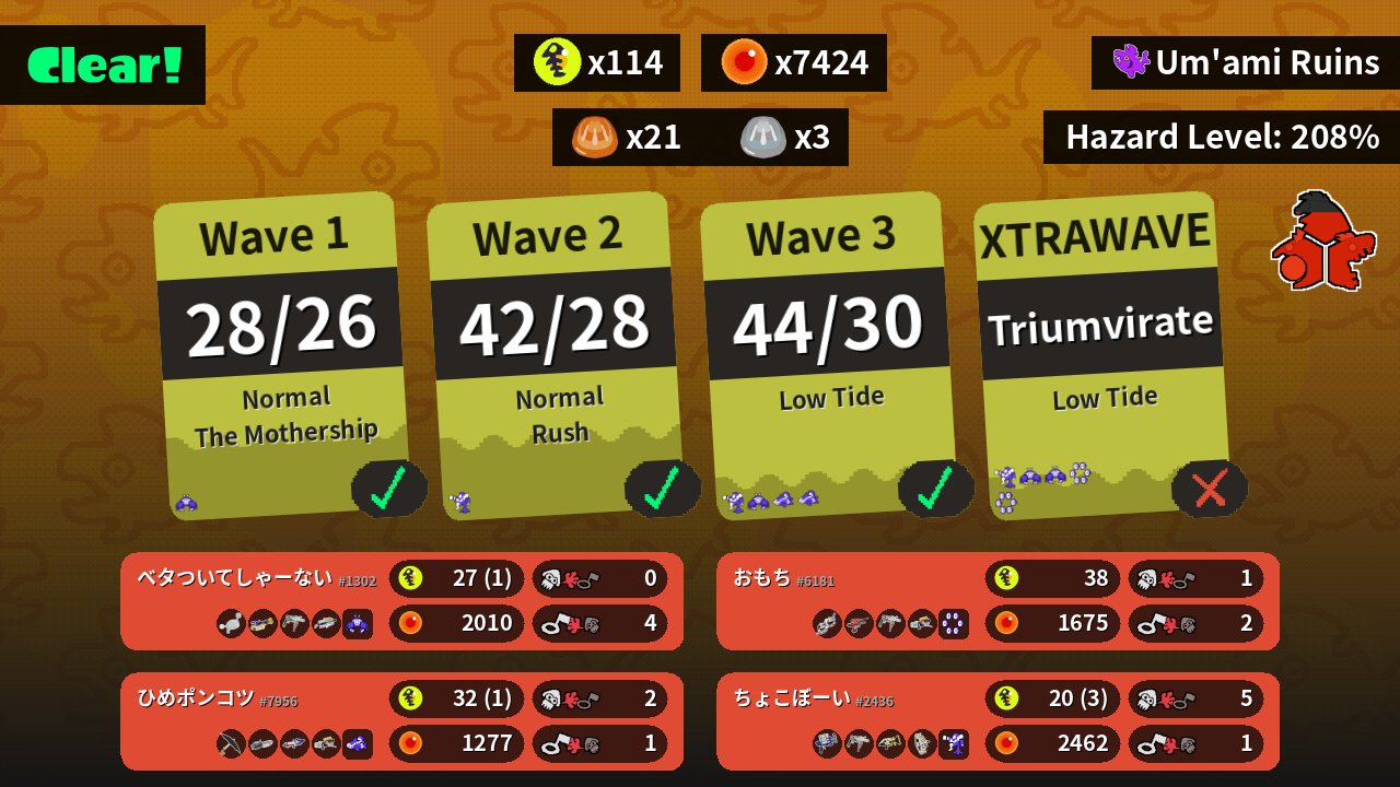 | Weapons | Luna Blaster Mini Splatling Grizzco Roller Grizzco Brella | Dark Tetra Dualies Dualie Squelchers Grizzco Roller Grizzco Blaster | Undercover Brella Ballpoint Splatling Splattershot Pro Grizzco Blaster | Clash Blaster Grizzco Roller Sploosh-o-matic Grizzco Stringer |