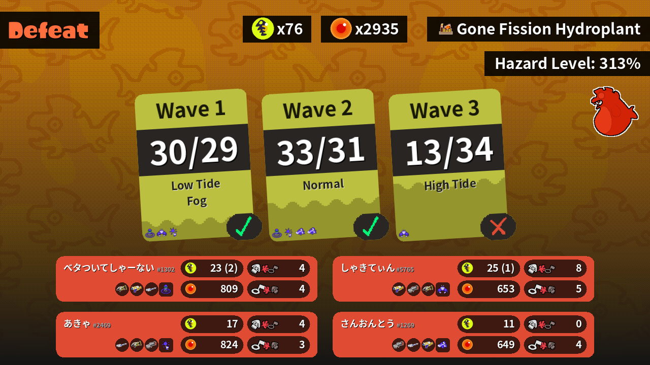 | Weapons | Sploosh-o-matic Splattershot E-liter 4K | Splattershot S-BLAST '92 Sploosh-o-matic | E-liter 4K Sploosh-o-matic S-BLAST '92 | S-BLAST '92 E-liter 4K Splattershot |