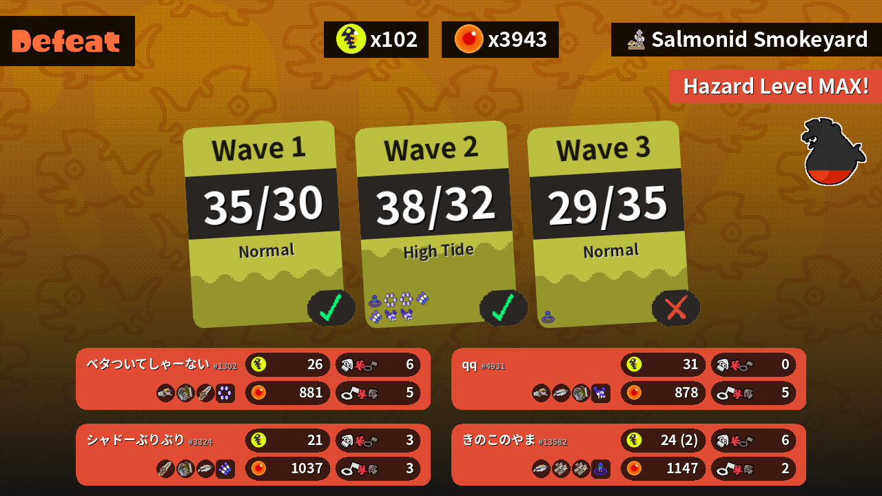 | Boss Salmonid | 20 | 21 | 14 | 24 |