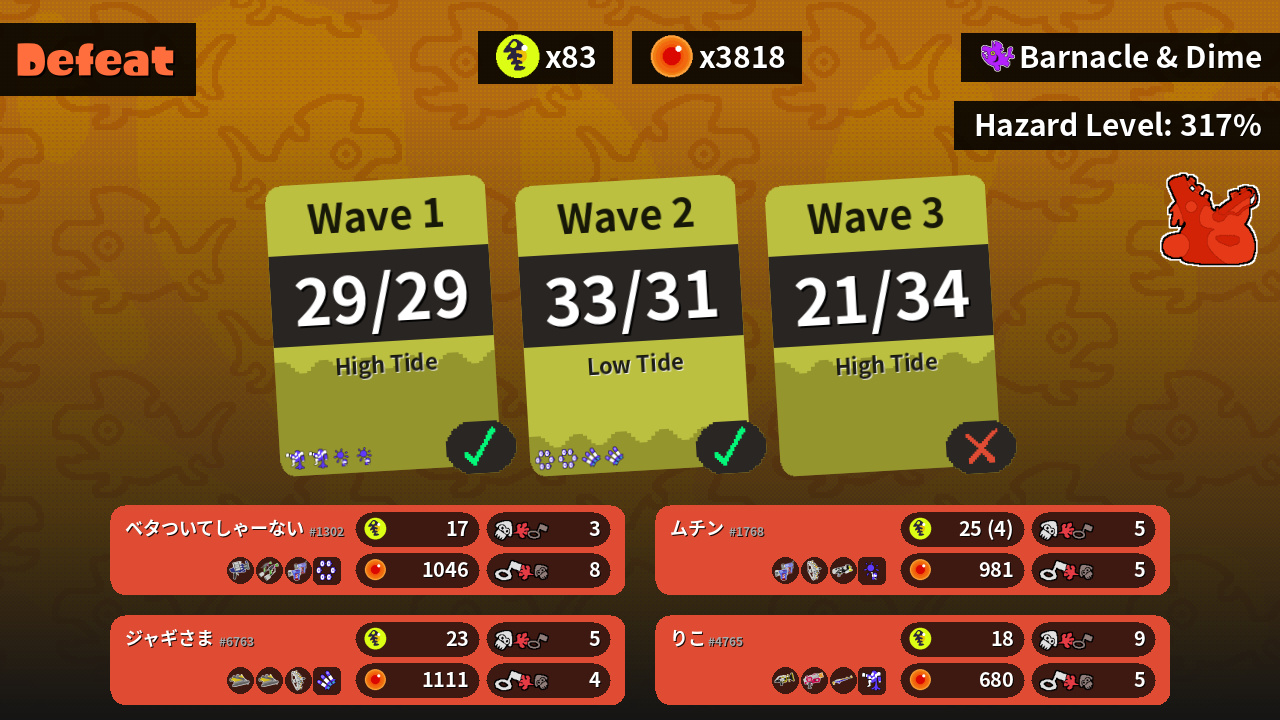| Weapons | Clash Blaster Splat Dualies Glooga Dualies | Glooga Dualies Grizzco Stringer Splattershot Nova | Dread Wringer Dread Wringer Grizzco Stringer | Sploosh-o-matic Rapid Blaster Splat Charger |