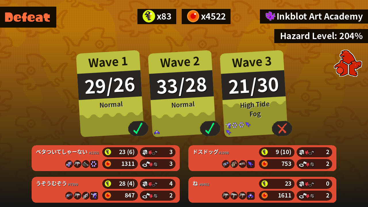 | Weapons | Glooga Dualies Grizzco Roller Bloblobber | H-3 Nozzlenose Grizzco Roller Dark Tetra Dualies | Grizzco Roller Dynamo Roller Grizzco Roller | L-3 Nozzlenose Douser Dualies FF Range Blaster |