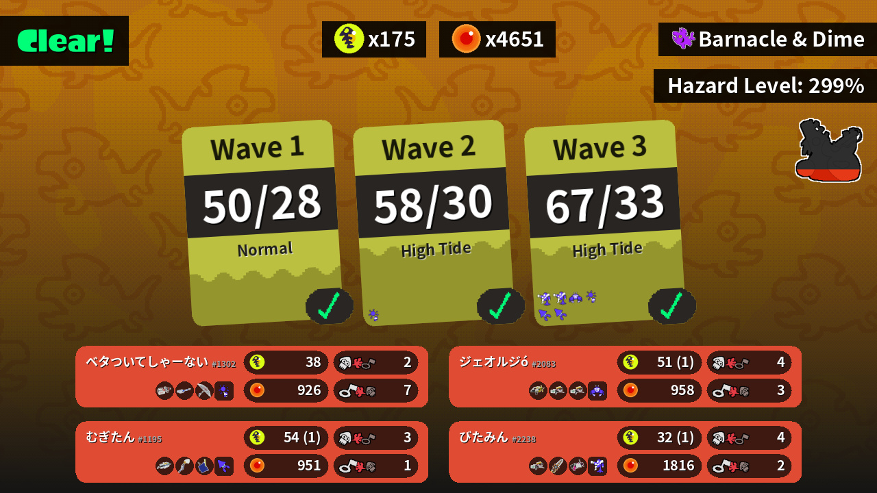 | Weapons | Heavy Edit Splatling E-liter 4K Splat Brella | Grizzco Brella Inkbrush Tri-Slosher | Splash-o-matic Grizzco Blaster Grizzco Blaster | Grizzco Blaster Grizzco Splatana .52 Gal |