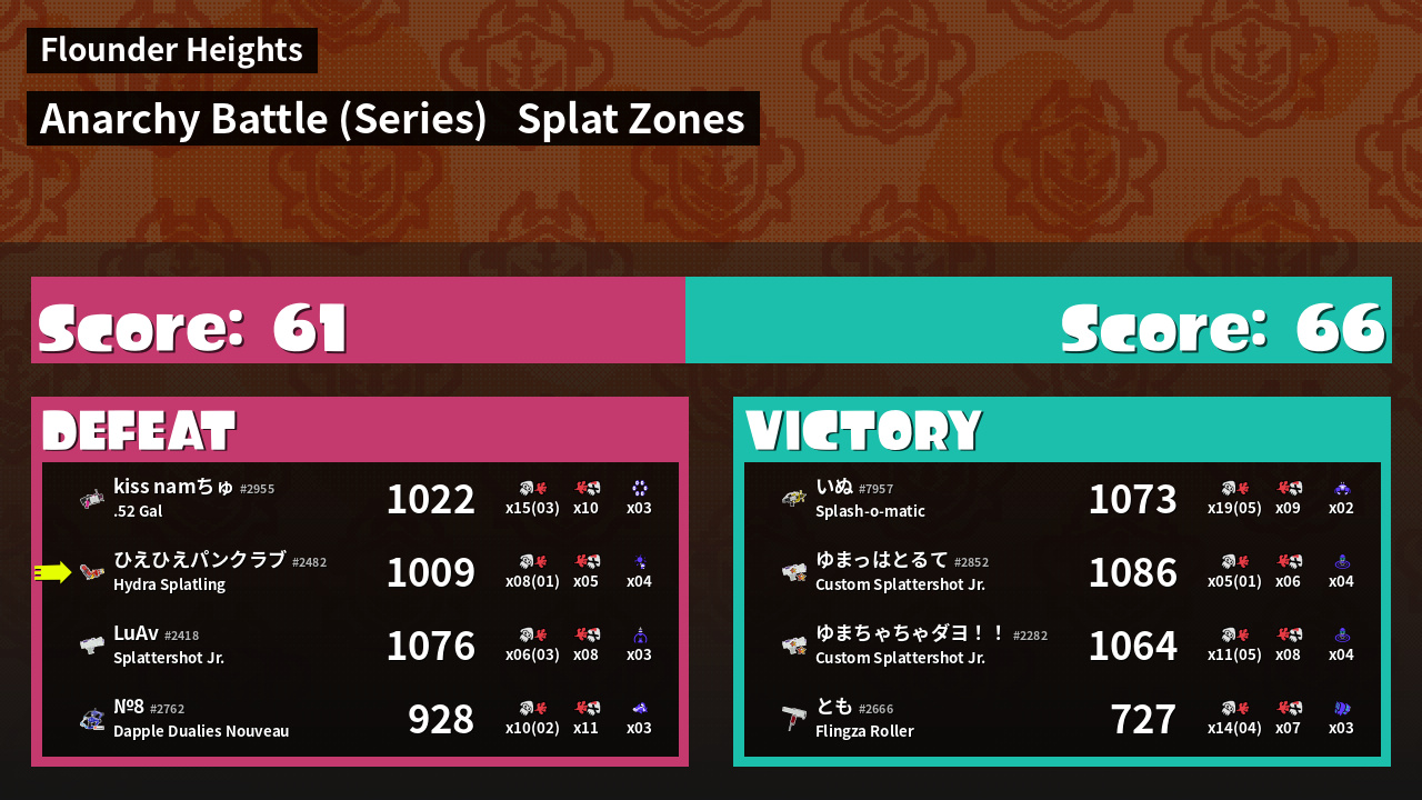 | Mode | Splat Zones - Anarchy Battle (Series) | ||