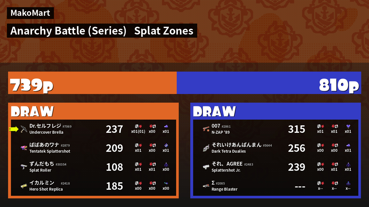 | Mode | Splat Zones - Anarchy Battle (Series) | ||