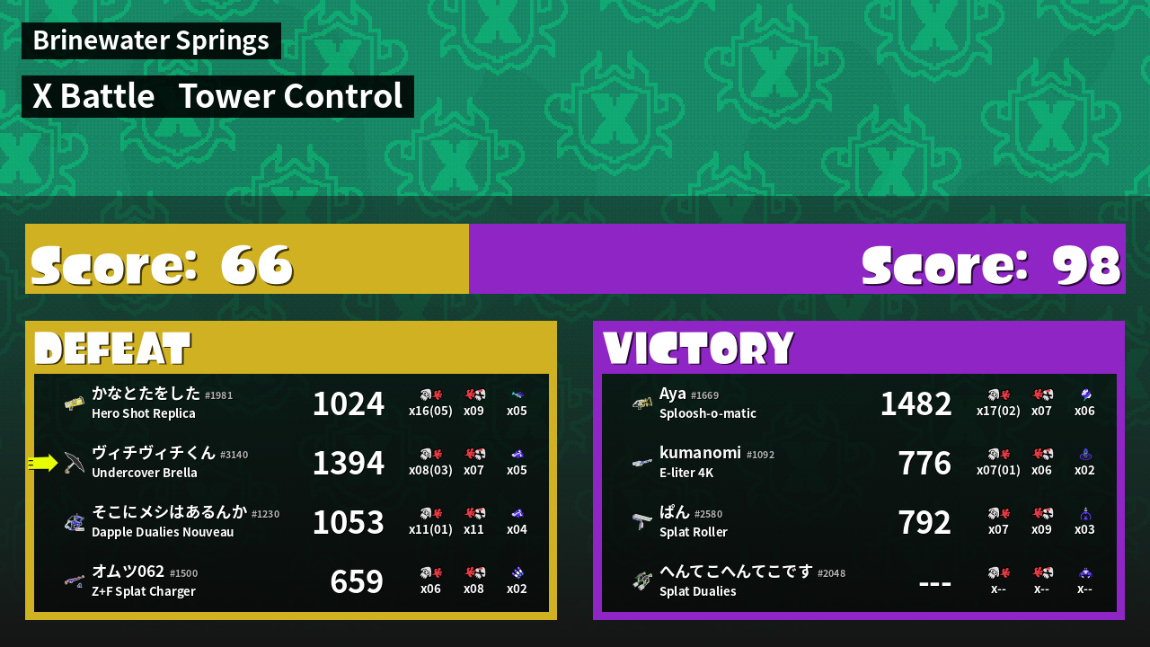 | Mode | Tower Control - X Battle | ||