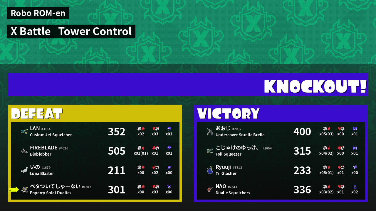| Weapon | Enperry Splat Dualies ( Curling Bomb / Triple Splashdown) | ||