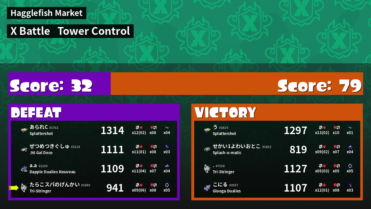 | Medals | #1 Score Booster #1 Splat Assister #1 Killer Wail 5.1 User | ||