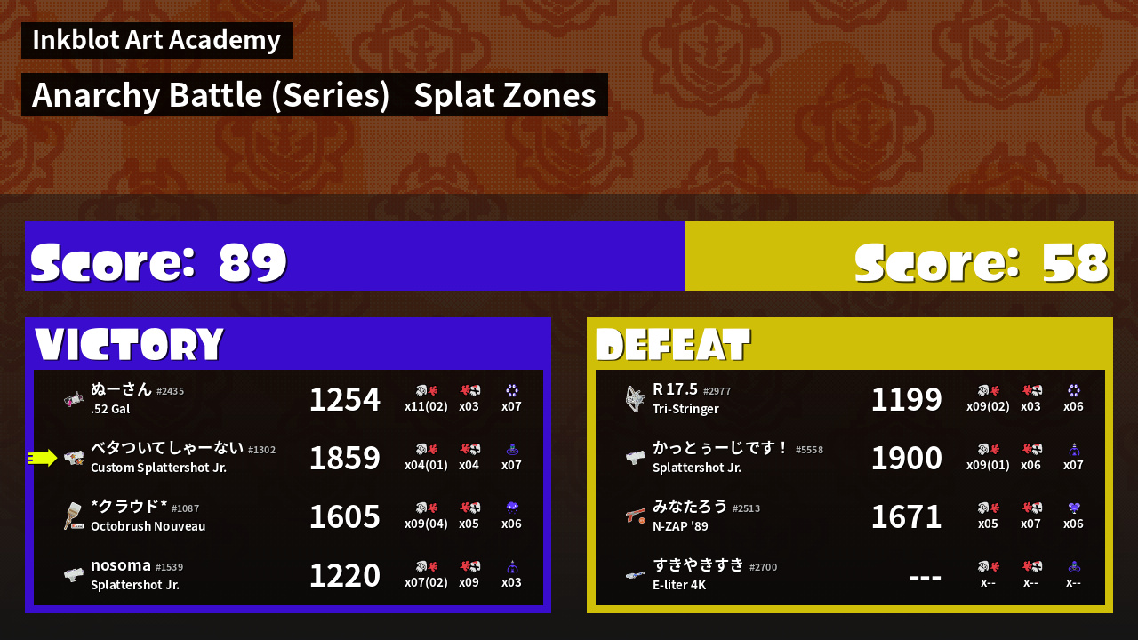| Mode | Splat Zones - Anarchy Battle (Series) | ||
