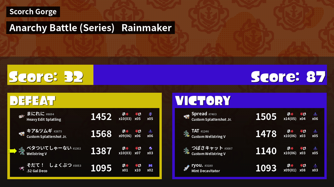 | Medals | #1 Overall Splatter #1 Enemy Splatter #1 Rainmaker Stopper | ||