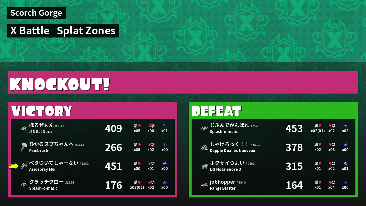 | Mode | Splat Zones - X Battle | ||